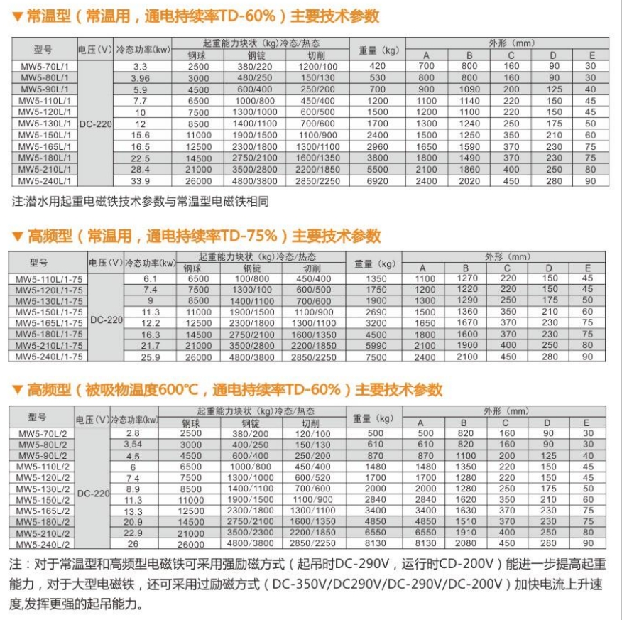 適用于搬運鑄鐵錠、鋼球及各種廢鋼。
