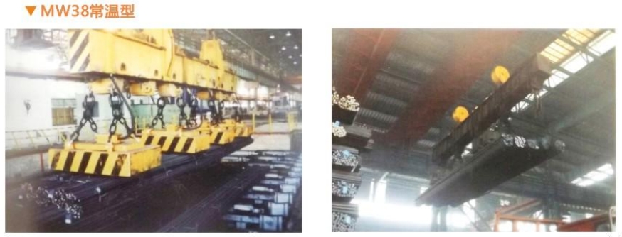 MW38系列電磁鐵運(yùn)用獨(dú)特的磁路結(jié)構(gòu),具有散熱性好、透磁深,能穿透多層氣隙的特點(diǎn),可吊運(yùn)沒(méi)作捆扎或只作了簡(jiǎn)單捆扎的棒材、扁鐵、角鋼等。可改善小圓鋼、螺紋鋼等這類(lèi)型材吊時(shí)撓度較大的問(wèn)題。有常溫型和高溫型.由于多采用兩臺(tái)或多臺(tái)聯(lián)吊,故其與掛梁連接多采用兩吊或四吊點(diǎn)結(jié)構(gòu),本樣本中所列均為兩吊點(diǎn)結(jié)構(gòu),訂貨時(shí)親注明與掛梁聯(lián)接的具體要求。