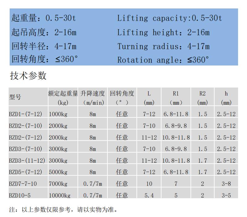 重型旋臂起重機是定柱式旋臂起重機的延伸產品,該機采用了回轉支承與變截面臂結構,起重高達2-16米,回轉半徑達4-17米。在操作方式上, 用戶可選擇手電門操作或無線遙控。本機適用于冶金, 鐵路、碼頭及機械制造等行業的物料吊運作業。許多場合下可替代橋式起重機和龍門吊作業,投資少、效益高,該產品投放市場后頗得用戶好評。
